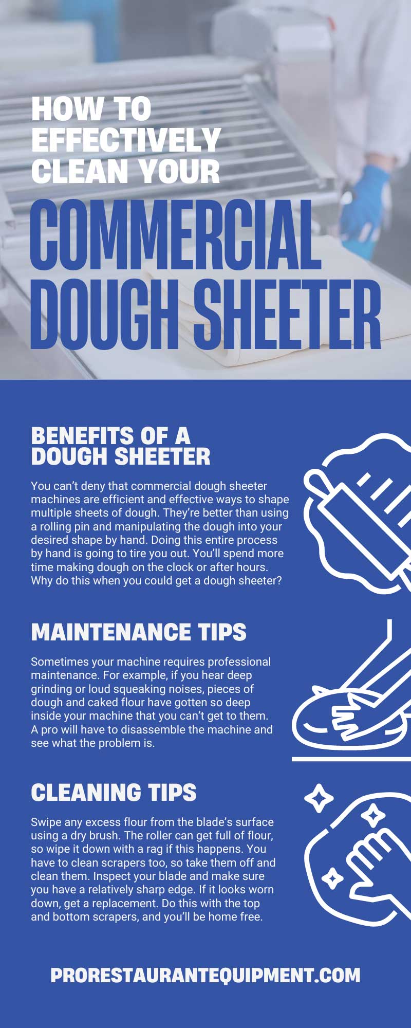 This is a key point when effectively cleaning your commercial dough sheeter. Ensure you determine when you can fix the problem on your own and when it’s time to get back up. You’ll have better peace of mind if you can make the distinction.
